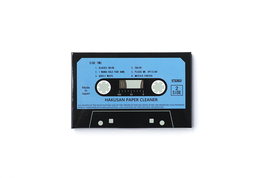 這是白山眼鏡書店原創的磁帶形狀的紙質清潔器。